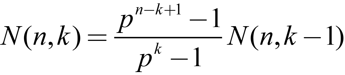 Now, this is the number of pk subgroups generated by each of the pk-1 subgroups. Yet this is too many as each extension to a pk group is made by more than one pk-1 group.